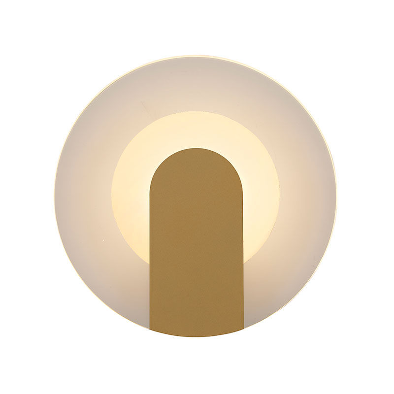 LED аплик Target е изработен от метал с елегантно пясъчно златно покритие и разсейвател от прозрачен и матиран акрил. Лампата за стена впечатлява с кръгла форма и модерен декоративен акцент, който създава мек ореол от светлина около осветителното тяло и придава изискано излъчване на стената.