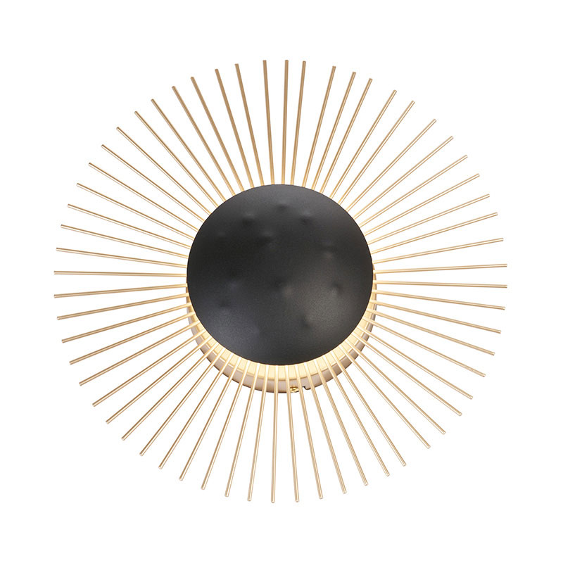 Апликът Varras е не просто осветително тяло, той е истински дизайнерски акцент, който ще преобрази вашия интериор с изящество и уникален стил. Изработен от метал в пясъчно-черен цвят с лъчи, украсени със златисто покритие, този аплик представлява съвременен шедьовър.