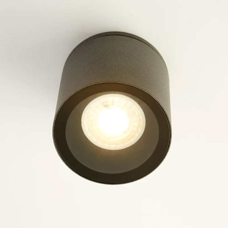 LED плафон за градина Trafalgar, изработен от алуминий в черен цвят и разсейвател от стъкло с цилиндрична форма. Лампата за таван е с ниво на защита IP65 - (6 - пълна защита срещу проникване на прахови частици и пълна защита от контакт; 5 - защитен от струя с ниско налягане от всички посоки), което я прави подходяща за външни условия, тераси, входове и влажни помещения като бани. Осветителното тяло е с фасунга GU10, позволявайки избор на предпочитана крушка според нуждите за светлинен поток и цветна температура.