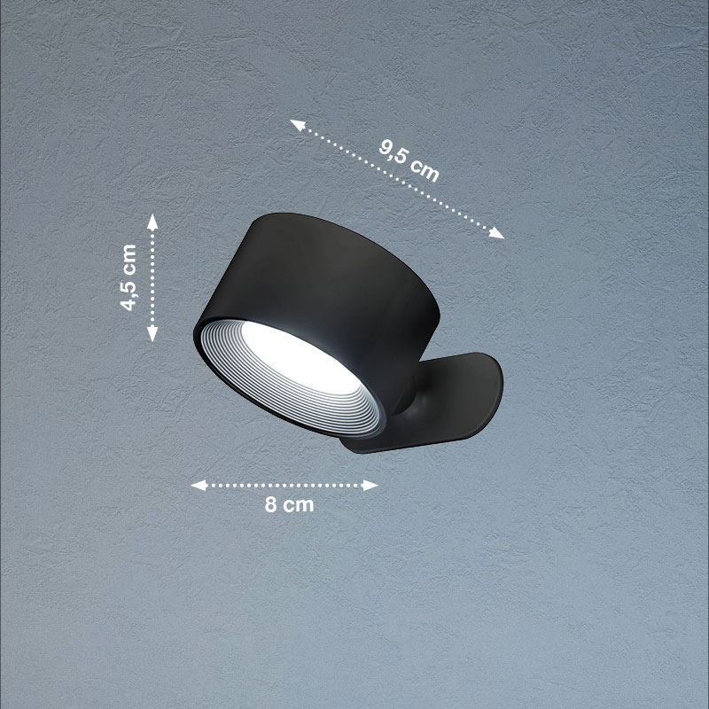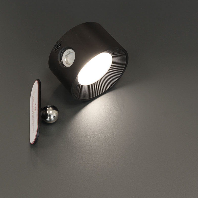 LED лампа за стена с батерия Magnetic, изработена от пластмаса в черен цвят и кръгла форма. Осветителното тяло е със спот лампа, която позволява насочване на светлинния поток в желаната посока.