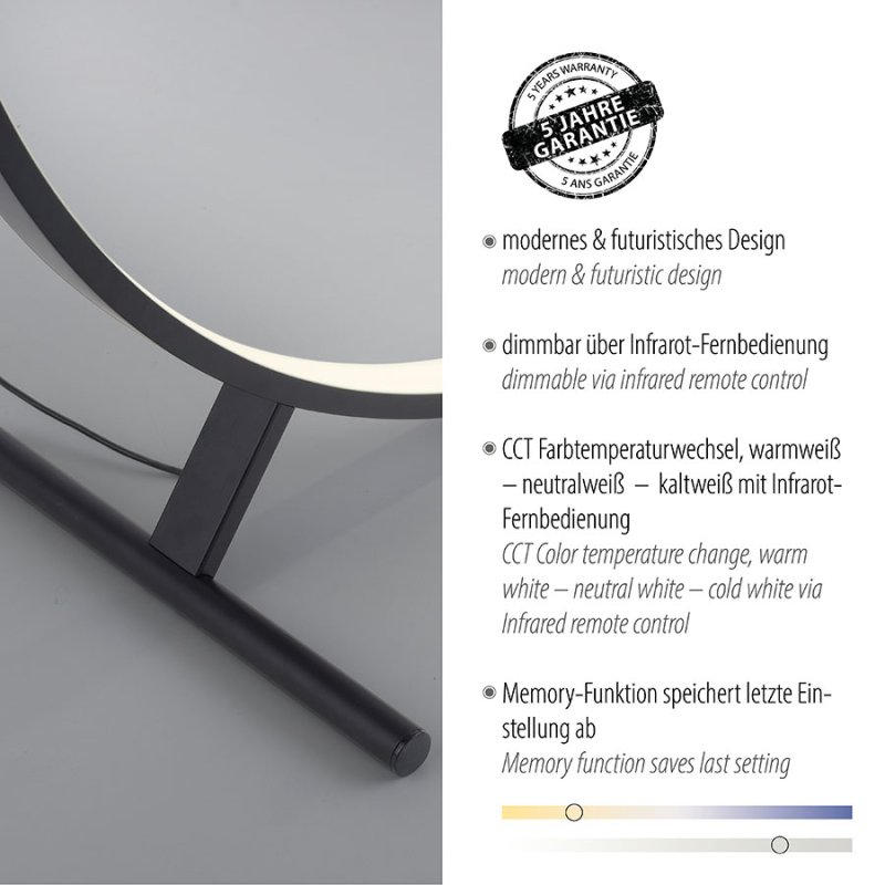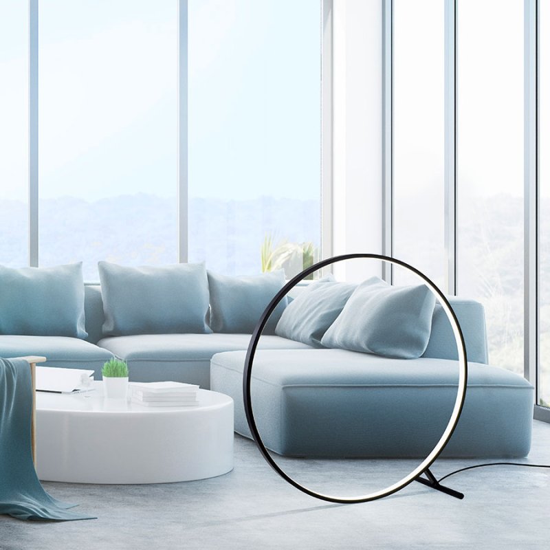 LED Лампион HULA е елегантно и модерно осветително тяло, което съчетава модерен дизайн и интелигентни технологии. С алуминиева основа в черен цвят и разсейвател от акрил, този лампион впечатлява със своята кръгла форма, която придава изтънчен акцент към всеки съвременен интериор. Подходящ е за осветление във всекидневна, коридор или спалня.