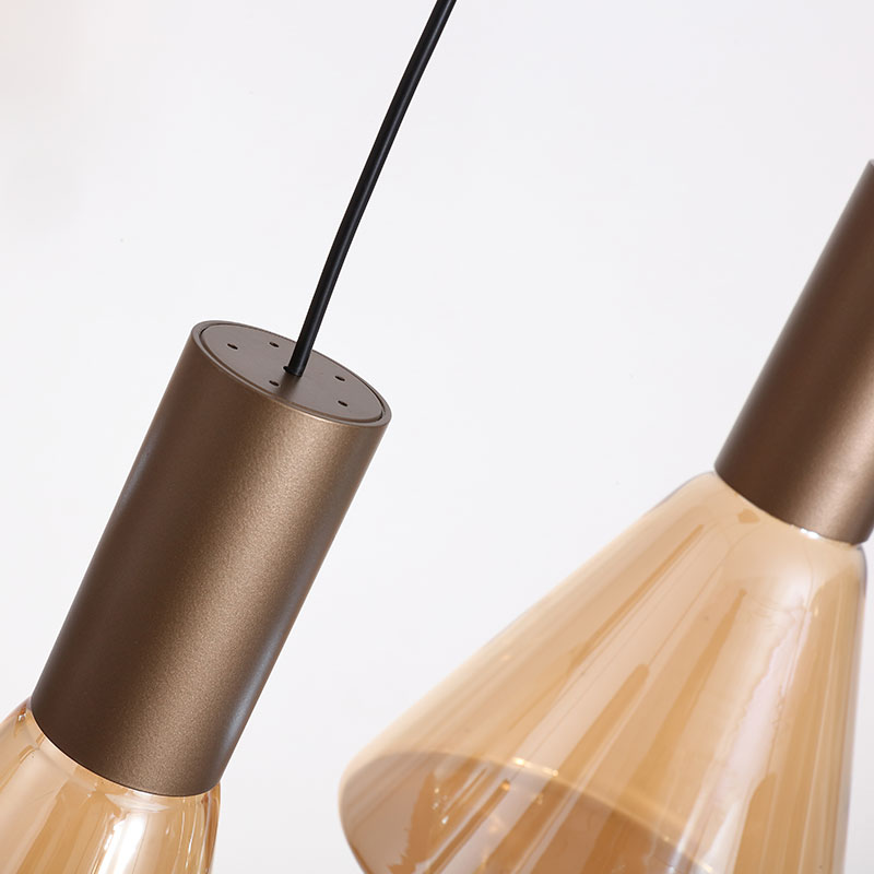 Кехлибареното стъкло омекотява светлината и създава уютно и комфортно осветление, подходящо за приятни вечери у дома и спокойна ежедневна среда.