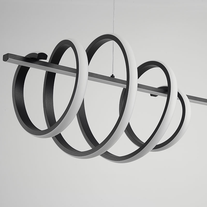 LED полилей Sword е изработен от метал в стилен черен цвят, комбиниран с разсейвател от PVC в бял цвят. Висящата лампа впечатлява с линейна основа и динамичен спираловиден дизайн на светлоизточника, който създава силен визуален акцент и модерно излъчване в интериора.