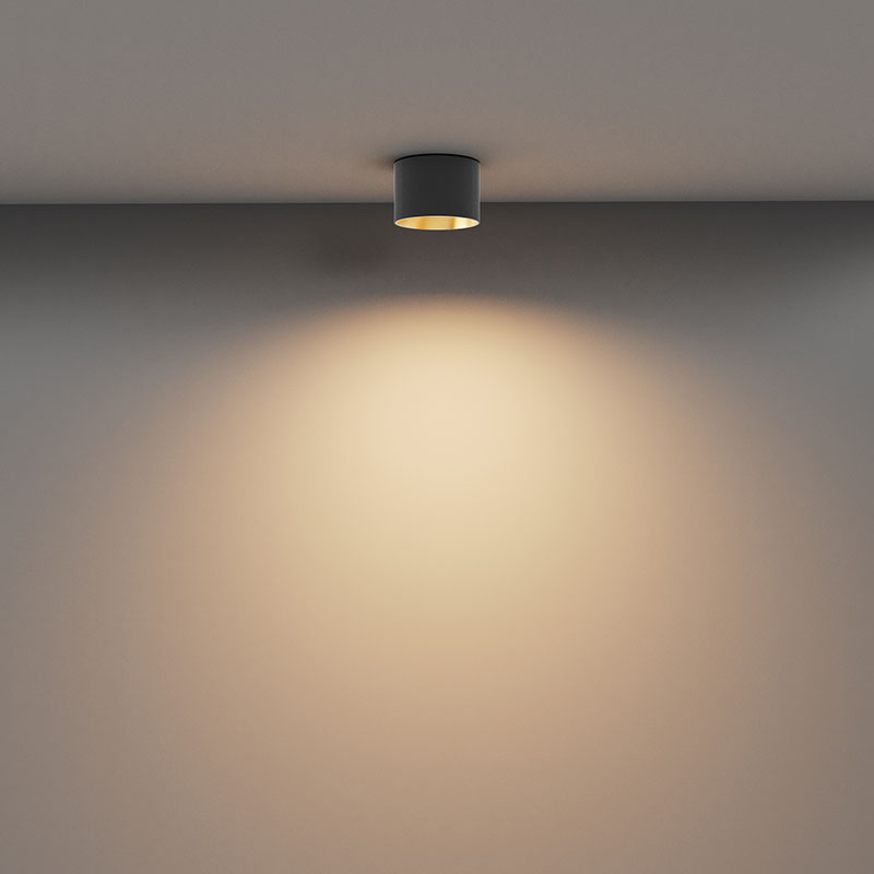 LED луна за открит монтаж Vega е изработена от алуминий в матов черен цвят със златист акцент и акрилен разсейвател с фина текстура в бяло. Компактният дизайн и изчистената цилиндрична форма позволяват лесна интеграция във всеки интериор. Осветителното тяло излъчва топла светлина с цветна температура 3000K, а широкият ъгъл на осветяване от 110° осигурява равномерно разпределение на светлината в помещението.
