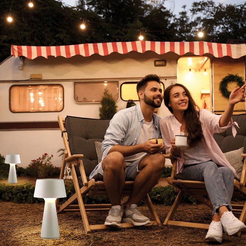 Настолната лампа ABERA е идеална за тераса, беседка, веранда или външни зони, където безжичната мобилност и влагозащитеността осигуряват гъвкавост и удобство за всеки момент от деня и нощта.