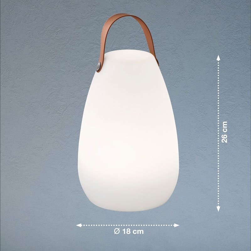 Преносимата лампа е със защита IP44 (4 - защитена от твърди предмети до 1мм; 4 - защитена от пръскане от всички посоки), което я прави идеална за използване както на закрито, така и на открито - на къмпинг, при излети с каравана, на терасата или в градината. Размерите на лампата варират според модела - от 12 до 19 см височина и от 12 до 14 см диаметър.