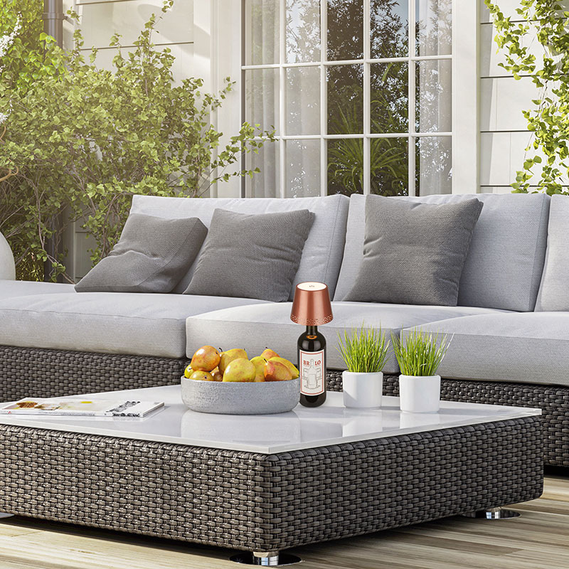 LED настолната лампа на батерия FLASKA с основа във формата на бутилка предлага интересен начин за осветление във вашия дом или на открито. Изработена от метал в меден матов цвят, тя представлява не само функционално осветително тяло, но и декоративен акцент.
