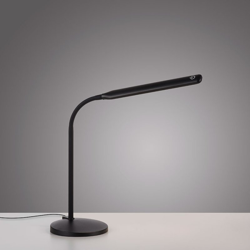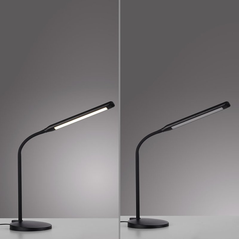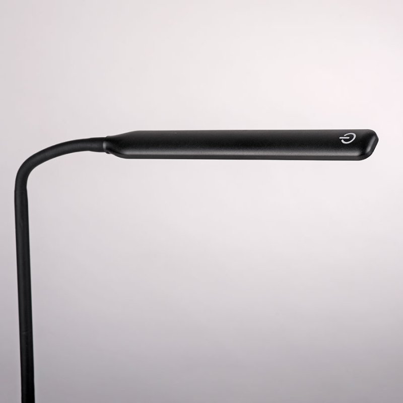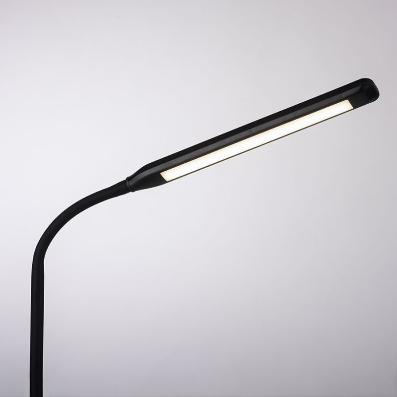 LED настолна лампа ELLY, изработена от ABS пластмаса в черен цвят с линейна форма и гъвкаво подвижно рамо.