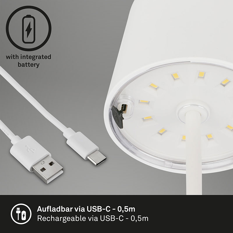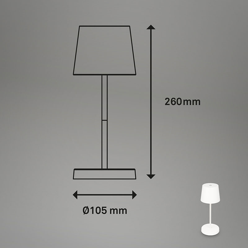 LED настолната лампа PIHA на батерии е идеалното осветително решение за тераса, градина или други места, където искате да създадете уютна атмосфера. Тази лампа е с влагозащитена конструкция и отговаря на стандарт IP44, което означава, че е защитена срещу влажност и водни пръски, което я прави подходяща за външна употреба.