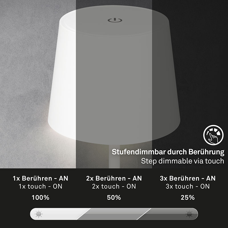 Лампата разполага с 3-степенен тъч димер, което ви позволява да регулирате яркостта на светлината в зависимост от вашите нужди и настроение. Този функционален димер ви предоставя контрол над осветлението, без да се налага да използвате допълнителни превключватели.