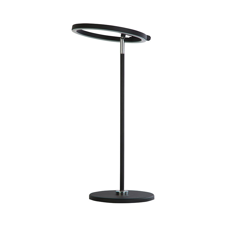 LED настолната лампа за бюро Space е изработена от метал в черен цвят, с разсейвател от акрил. Светлоизточникът е кръгъл и подвижен, което ви дава възможност да насочите светлината точно там, където е най-необходима, идеално за работа или учене. Лампата е с модерен дизайн и е оборудвана с тъч димер, който ви позволява да регулирате силата на светлината в три степени, за максимален комфорт и гъвкавост.
