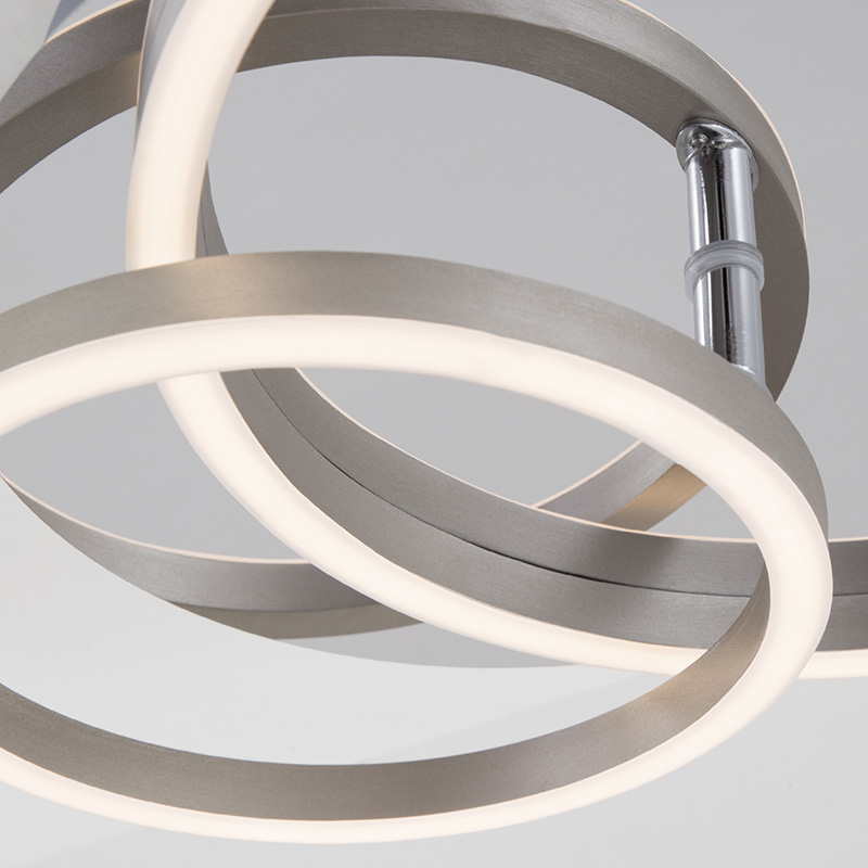 LED плафон FRAME, изработен от метална рамка в цвят матиран никел и подвижни разсейватели в бяло. Плафонът се димира на степени чрез ключа на стената. Плафонът е с функция памет, чрез която помни вашите последни настройки. Дизайнът на осветителното тяло е подходящ за осветление за всекидневна, осветление за коридор, осветление за спалня. Производител BRILO, Германия.