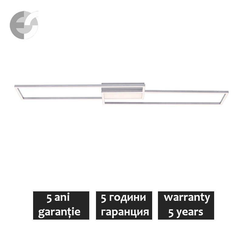 Осветително тяло - LED Плафон IVEN, изработен от неръждаема стомана, алуминий и пластмасови разсейватели с акцент, наподобяващ дърво и LED разсейватели. Чрез дистанционното можете лесно и удобно да регулирате цветната температура на светлината - от топло бяла към неутрална (дневна) и обратно; силата на светене -силно или слабо; да настроите таймер за изключване; бутон за нощен режим (10% светлина). Осветителното тяло е подходящо за осветление за всекидневна, осветление за спалня, осветление за коридор, осветление за офис. Производител Leuchten Direkt, Германия.
