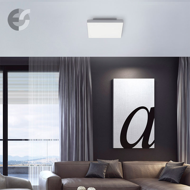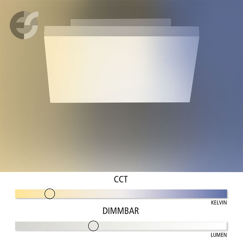 Осветително тяло - LED Плафон CANVAS, изработен от метал и пластмасов разсейвател в бяло в бяло. Чрез дистанционното можете лесно и удобно да регулирате цветната температура на светлината - от топло бяла към неутрална (дневна) и обратно; силата на светене - силно или слабо и включване и изключване. Осветителното тяло е подходящо за осветление за всекидневна, осветление за спалня, осветление за коридор, осветление за офис. Производител Leuchten Direkt, Германия.