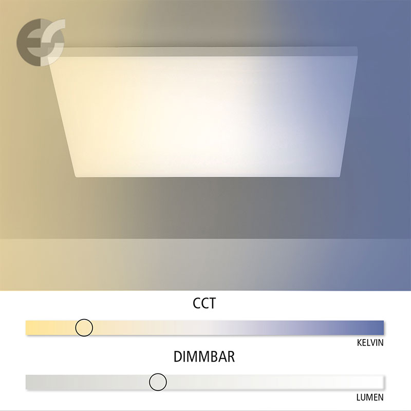 Осветително тяло - LED Плафон CANVAS, изработен от метал и пластмасов разсейвател в бяло в бяло. Чрез дистанционното можете лесно и удобно да регулирате цветната температура на светлината - от топло бяла към неутрална (дневна) и обратно; силата на светене - силно или слабо и включване и изключване. Осветителното тяло е подходящо за осветление за всекидневна, осветление за спалня, осветление за коридор, осветление за офис. Производител Leuchten Direkt, Германия.