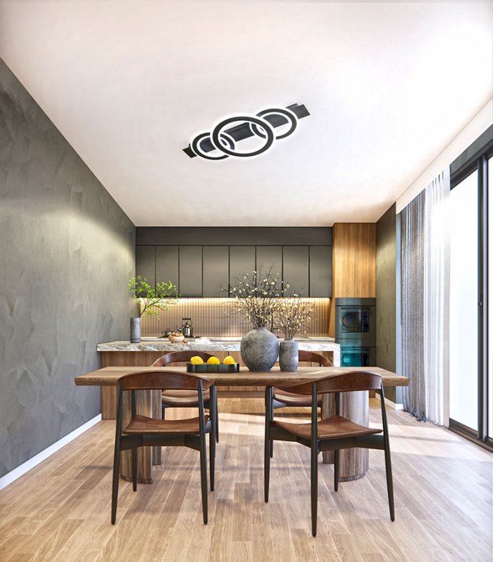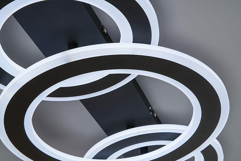 Плафонът Circle е модерно и функционално осветително тяло, което може да подчертае вашия дом с изчистен стил и висока функционалност. Той е изработен от метал в пясъчно-черен цвят и разполага с ринг преплетени светлоизточници от акрил, които създават хармоничен и модерен дизайн.