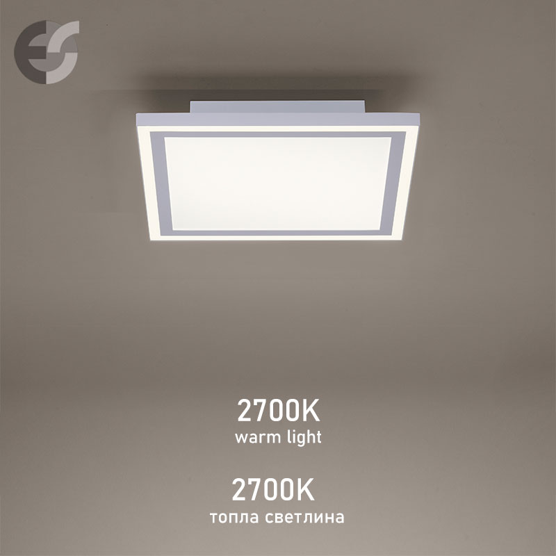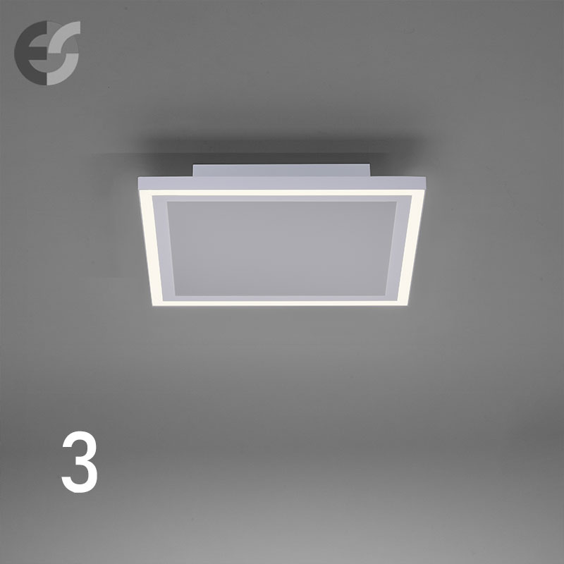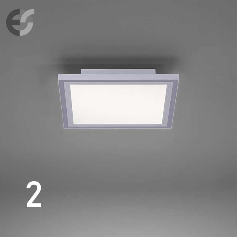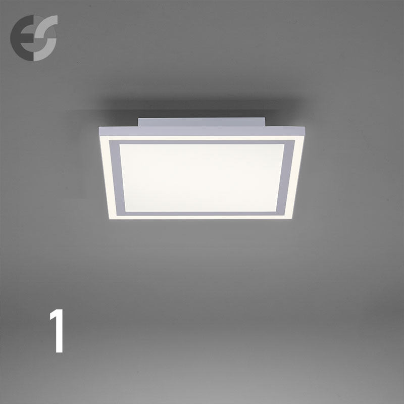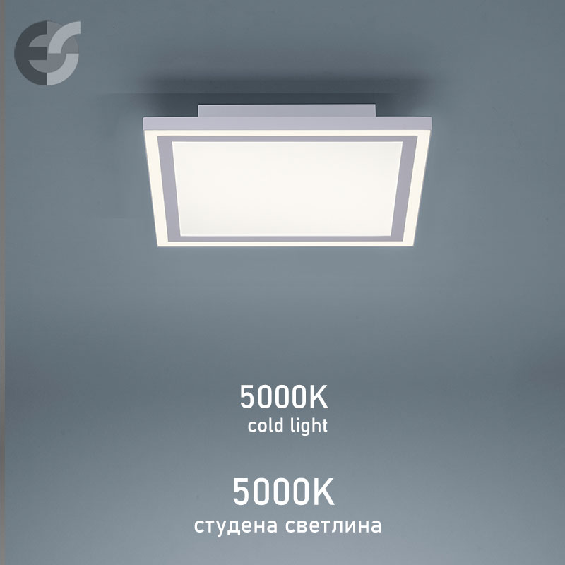 Осветително тяло - LED Плафон EDGING, изработен от неръждаема стомана и пластмасов разсейвател в бяло. Чрез дистанционното можете лесно и удобно да регулирате цветната температура на светлината - от топло бяла към неутрална (дневна) и обратно; силата на светене -силно или слабо; да настроите таймер за изключване; бутон за нощен режим (10% светлина); лампата е и с 2 светлоичника - вътрешен и външен, като можете да ги включвате поотделно или заедно. Двата светлоизточника на плафона могат да бъдат управлявани и чрез ключа на стената - с първото вклчване на лампата - свети целия плафон, когато изключите и я включите за втори път свети само външната част, а когато я включите за трети път - светва само вътрешната част. Осветителното тяло е подходящо за осветление за всекидневна, осветление за спалня, осветление за коридор, осветление за офис. Производител Leuchten Direkt, Германия.