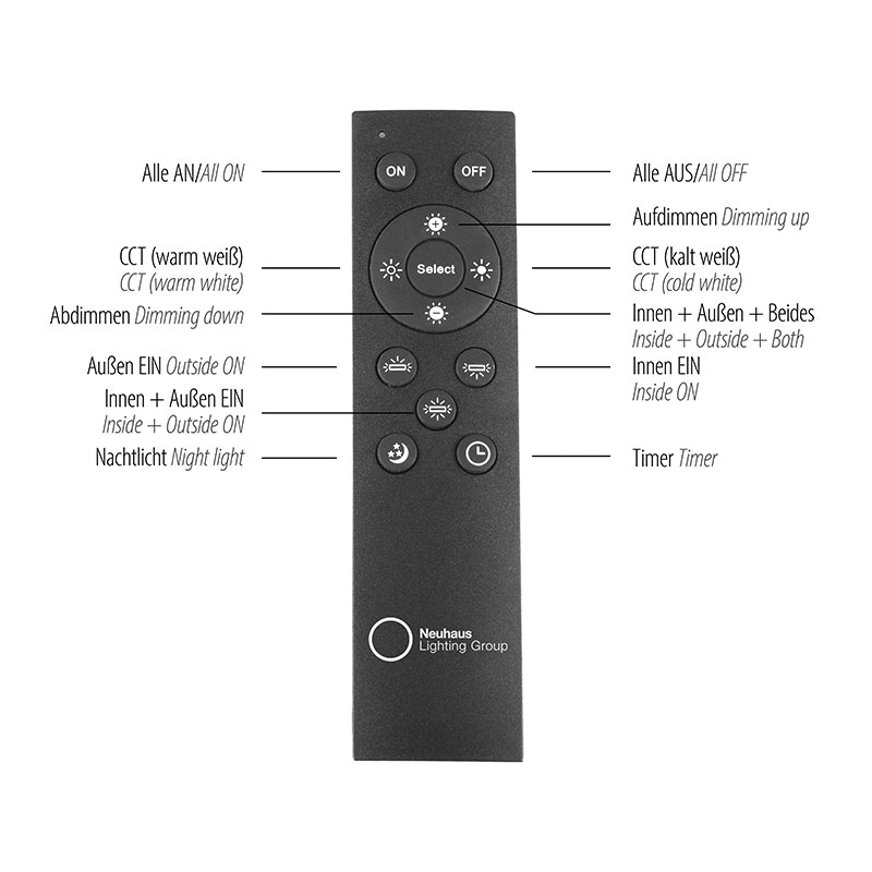 - Избор на светлинни зони: можете да включвате централния, външния светлоизточник или и двата едновременно