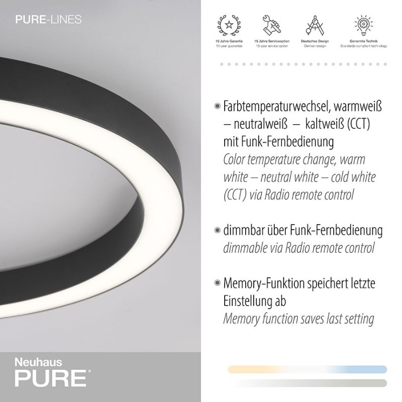 LED Плафон PURE Lines Round се отличава с висококачествена изработка и надеждност, подкрепени от 10-годишна гаранция от Neuhaus PURE.