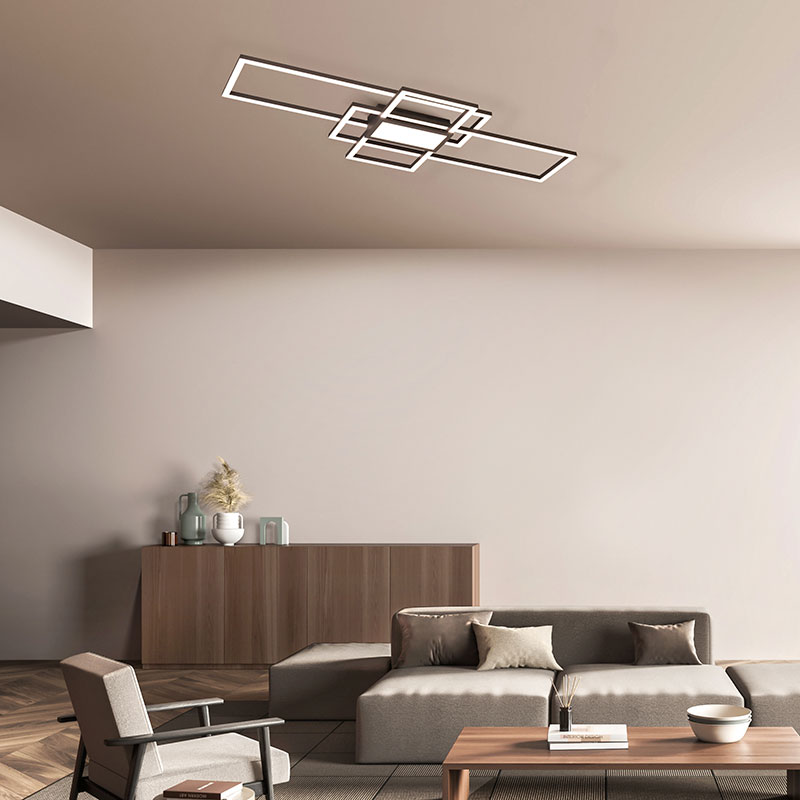 Плафонът Seth с дистанционно управление е модерно осветително тяло, което предлага удобство и функционалност при осветяването на вашия дом. Той е изработен от метал в пясъчно-черен цвят и разполага с правоъгълни светлоизточници от акрил, които придават съвременен вид и стил на плафона.