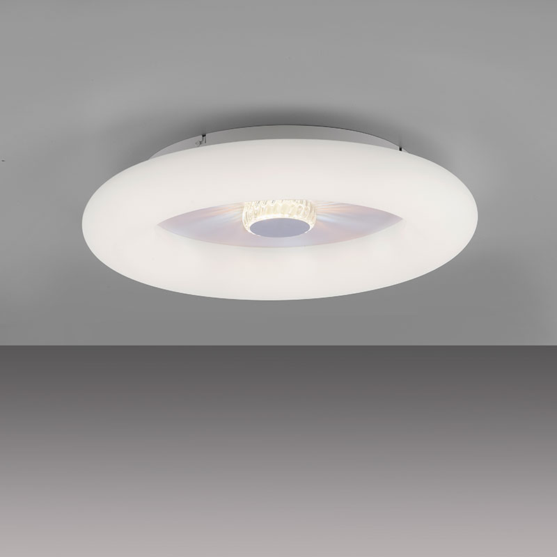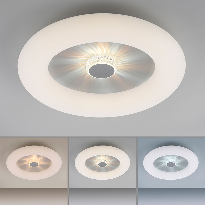 Осветително тяло - VERTIGO LED плафон, разполага с мощна LED платка, която предлага широка гама от цветови температури - от топла, уютна светлина до по-студена и освежаваща. Вграденият CCT модул ви позволява да регулирате цветната температура според настроението си. Този плафон има две светлинни зони, които могат да работят независимо една от друга. Можете да осветите външния ръб или да се насладите на играта на кристалната светлина в средата на лампата. Практичното безжично дистанционно управление ви позволява удобно да контролирате плафона. Дизайнът на осветителното тяло е подходящ за осветление за всекидневна, осветление за кухня, осветление за коридор, осветление за спалня. Производител Leuchten Direkt, Германия.