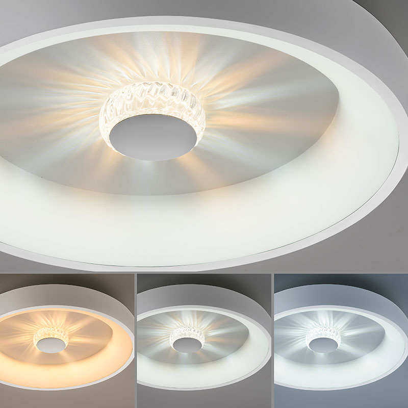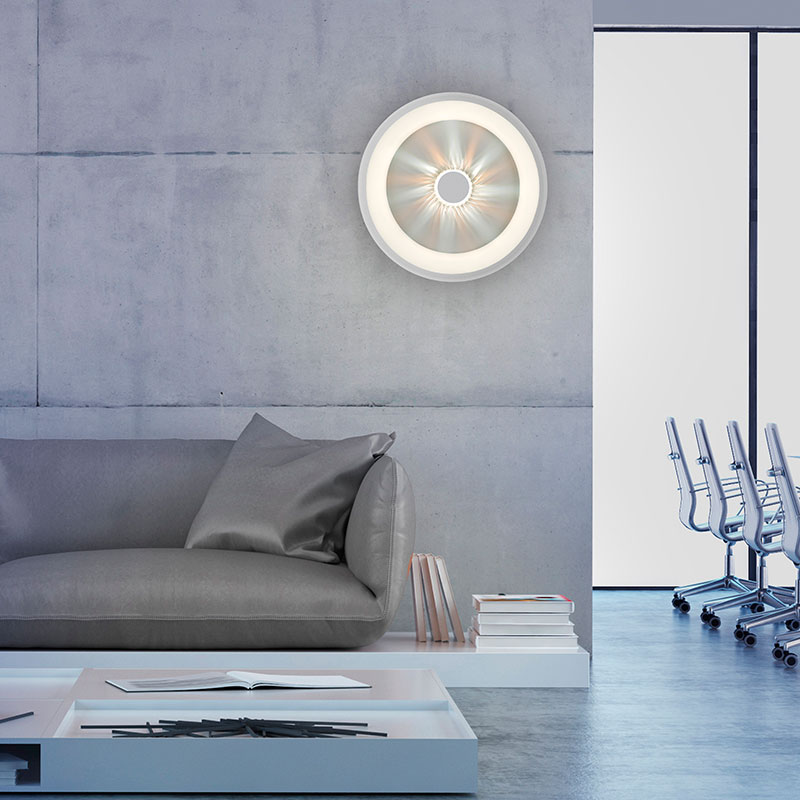 Осветително тяло - VERTIGO LED плафон, разполага с мощна LED платка, която предлага широка гама от цветови температури - от топла, уютна светлина до по-студена и освежаваща. Вграденият CCT модул ви позволява да регулирате цветната температура според настроението си. Този плафон има две светлинни зони, които могат да работят независимо една от друга. Можете да осветите външния ръб или да се насладите на играта на кристалната светлина в средата на лампата. Практичното безжично дистанционно управление ви позволява удобно да контролирате плафона. Дизайнът на осветителното тяло е подходящ за осветление за всекидневна, осветление за кухня, осветление за коридор, осветление за спалня. Производител Leuchten Direkt, Германия.