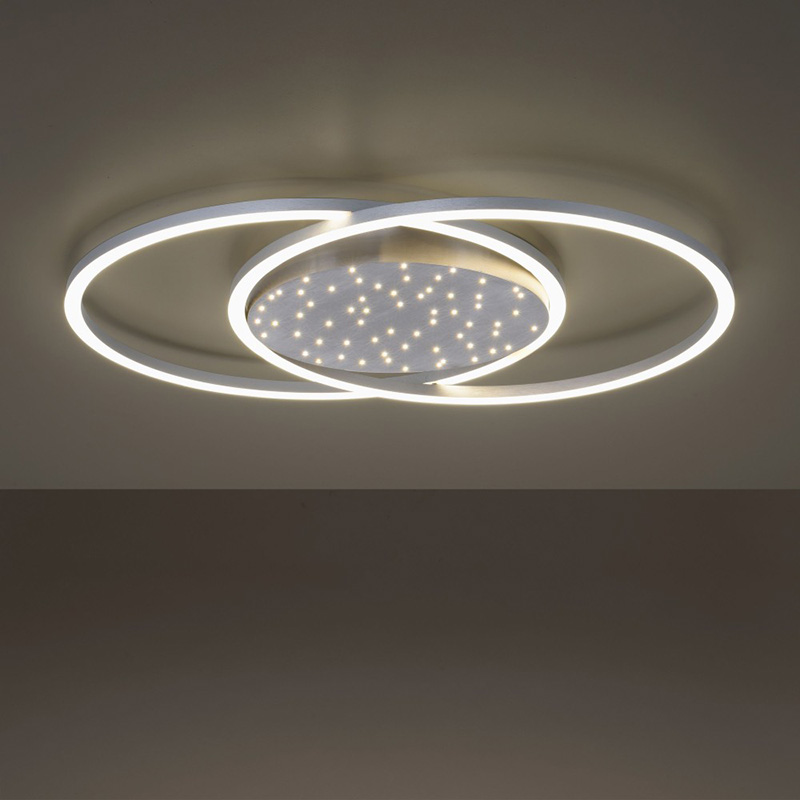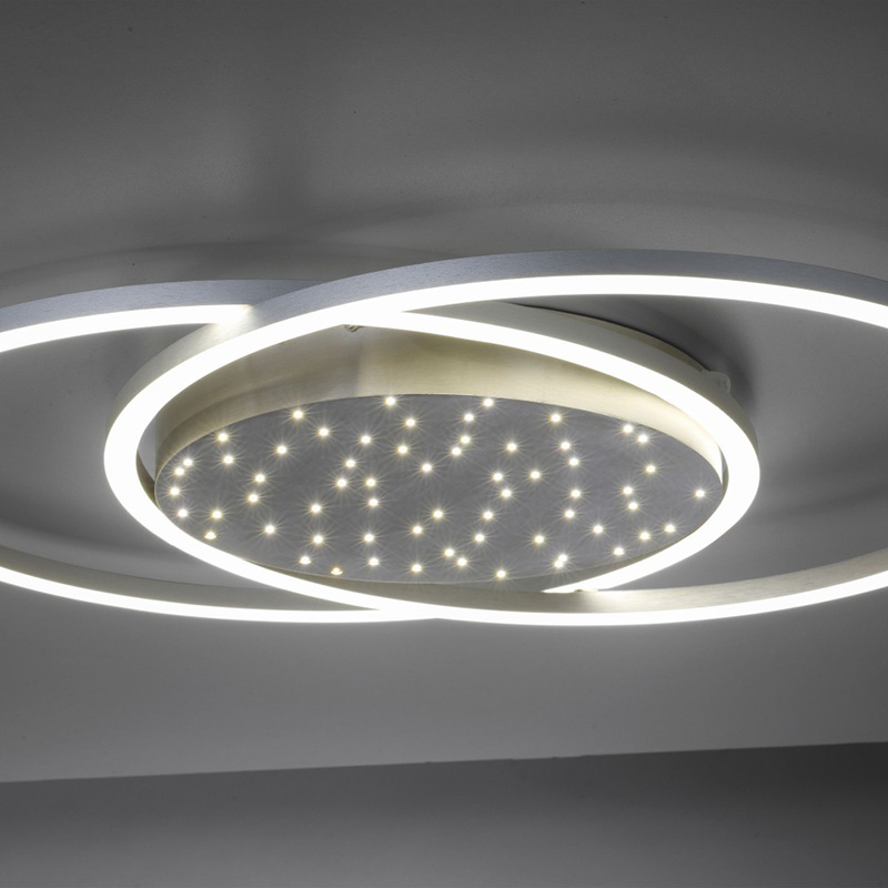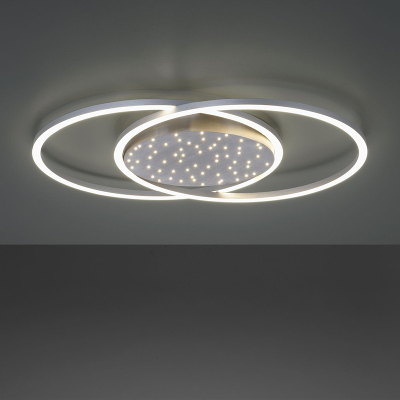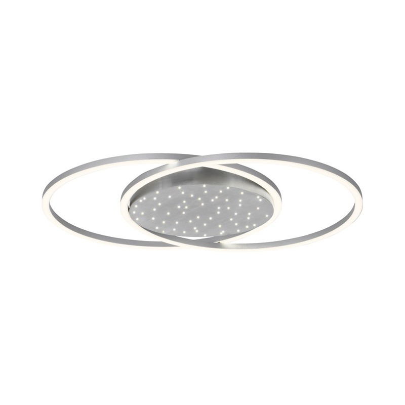 LED плафон YUKI, изработен от алуминий и пластмасови разсейватели. Плафонът е с изчистен, но впечатляващ дизайн. С два пресечени кръгли светлоизточника и с основа тип звездно небе. Можете да включвате само звездното небе, само рамката или и двете. Плафонът е с включено в комплекта дистанционно, чрез което лесно и удобно можете да включвате и изключвате осветлението; да променяте силата на светлината - от слаба към силна и обратното; да променяте цветната температура - от топло бяла към неутрална, дневна светлина. Чрез функцията памет лампатапомни последните ви настройки. Производител Paul Neuhaus, Германия.