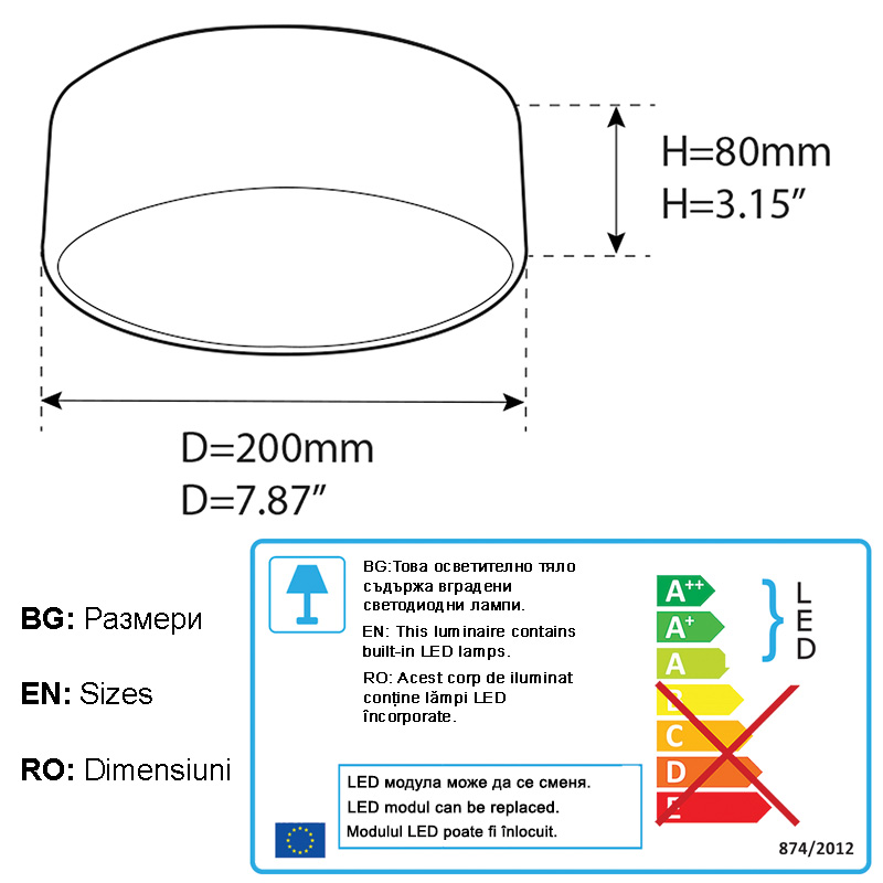 Осветителното тяло се продава с включен LED модул - 12W / 3000K.