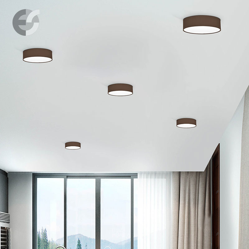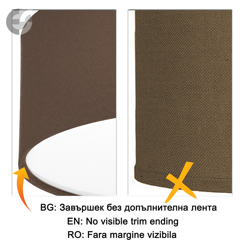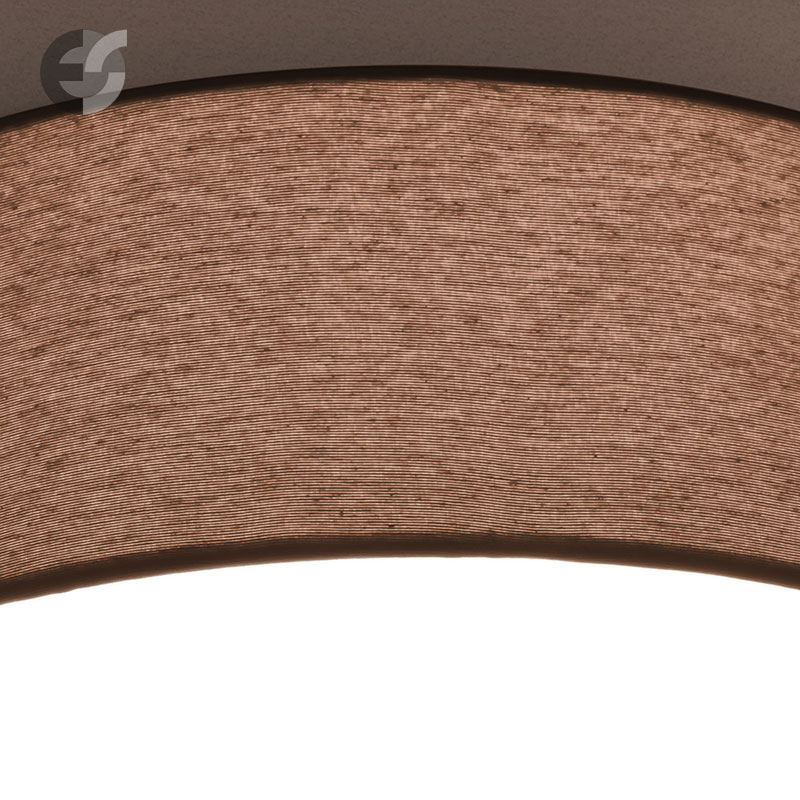 Осветително тяло - стилен и модерен плафон, изработен от метална основа, текстилен абажур в кафяв цвят и PVC разсейвател. Дизайнът на плафона е семпъл, което го прави подходящ за всеки интериор. Лампата се инсталира на тавана, като не се изисква сглобавяне, единствено трябва да премахнете защитното фолио на разсейвателя и да го поставите в плафона. Плафонът за всекидневна, осветление за детска стая, осветление за кухня, осветление за коридор, осветление за заведение, осветление за хотел. Производител CoupLight, България.
