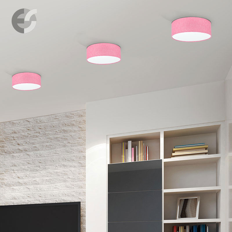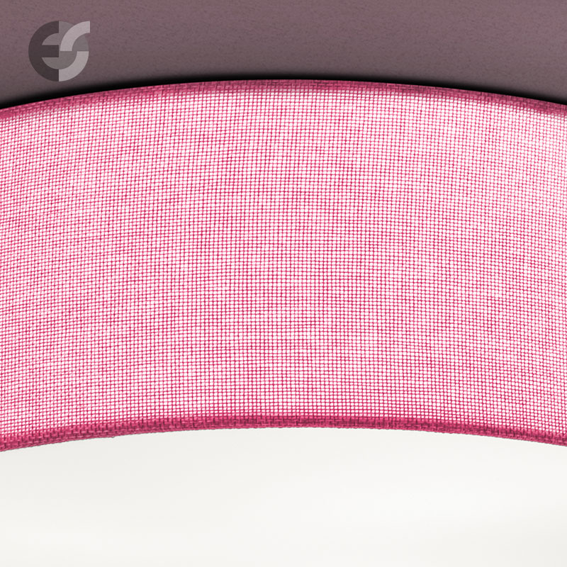 Осветително тяло - стилен и модерен плафон, изработен от метална основа, текстилен абажур, тип мрежа в розов цвят и PVC разсейвател. Дизайнът на плафона е семпъл, което го прави подходящ за всеки интериор. Лампата се инсталира на тавана, като не се изисква сглобавяне, единствено трябва да премахнете защитното фолио на разсейвателя и да го поставите в плафона. Плафонът за всекидневна, осветление за детска стая, осветление за кухня, осветление за коридор, осветление за заведение, осветление за хотел. Производител CoupLight, България.