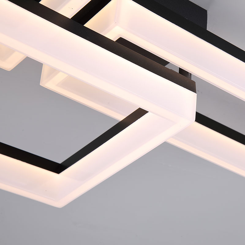 LED плафон Wall Art II е изработен от метал с елегантно матово черно покритие и разсейвател от бяла пластмаса, който осигурява равномерно и приятно разпределение на светлината. Таванната лампа впечатлява с модерна геометрична композиция от припокриващи се квадратни форми, които придават съвременен и артистичен акцент на интериора.