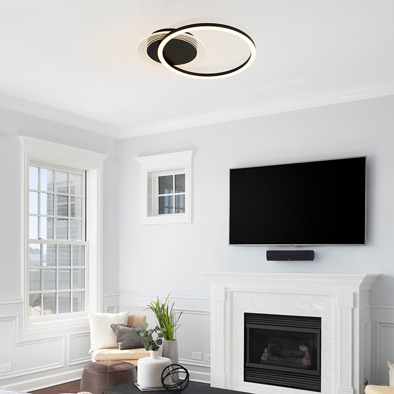 Плафон Contour LED Flush е модерно и елегантно осветително тяло с изчистен геометричен дизайн, което придава съвременен характер на интериора. Конструкцията в матово черно е допълнена от бял дифузер, който осигурява равномерно и комфортно разпределение на светлината. Вграденият LED модул с мощност 24W излъчва топла светлина с цветна температура 3000K и светлинен поток 2025 лумена, подходяща за дневни, спални и модерни жилищни пространства. Плафонът е димируем чрез 3-степенно управление On/Off от стандартен стенен ключ, което позволява лесно регулиране на атмосферата според нуждите. Осветителното тяло не разполага с вграден ключ и се доставя с включен интегриран LED източник.