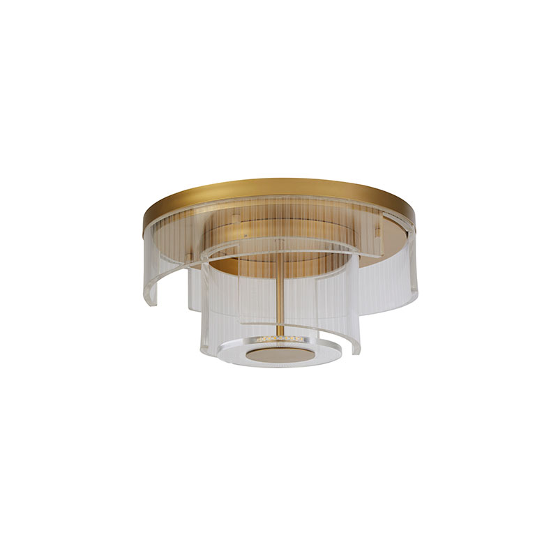 LED плафонът Deco е изработен от метал в изискан златист цвят, съчетан с разсейвател от прозрачен акрил, което създава модерен и стилен акцент във всяко помещение. Уникалният дизайн на плафона лесно привлича вниманието и го превръща в централна част на интериора, добавяйки елегантност и изтънченост.