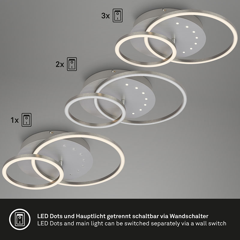 С включения LED модул от 24W, този плафон доставя ярка и ефективна светлина с интензитет от 2550 лумена и топла бяла светлина с цветна температура от 3000K, която създава уют и комфорт на всяко помещение.