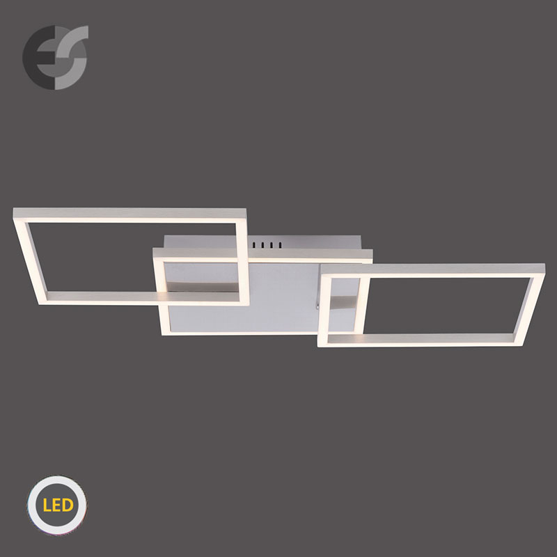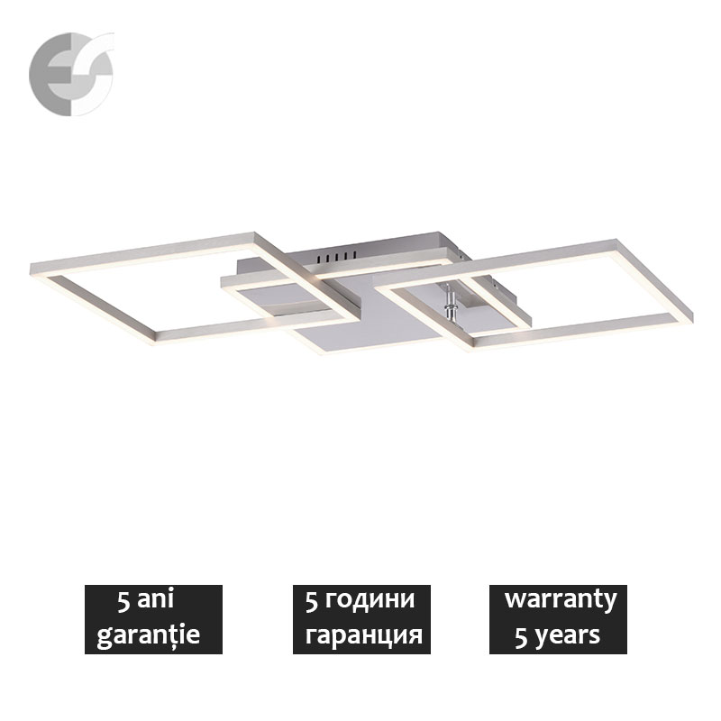 Осветително тяло - LED Плафон IVEN, изработен от метал в матиран хром и LED разсейватели, които са подвижни. Плафонът е с вграден димер за лесно регулиран на силата на светлината - от слаба към силна, чрез ключа на стената. Осветителното тяло е подходящо за осветление за всекидневна, осветление за спалня, осветление за коридор, осветление за офис. Производител Leuchten Direkt, Германия.