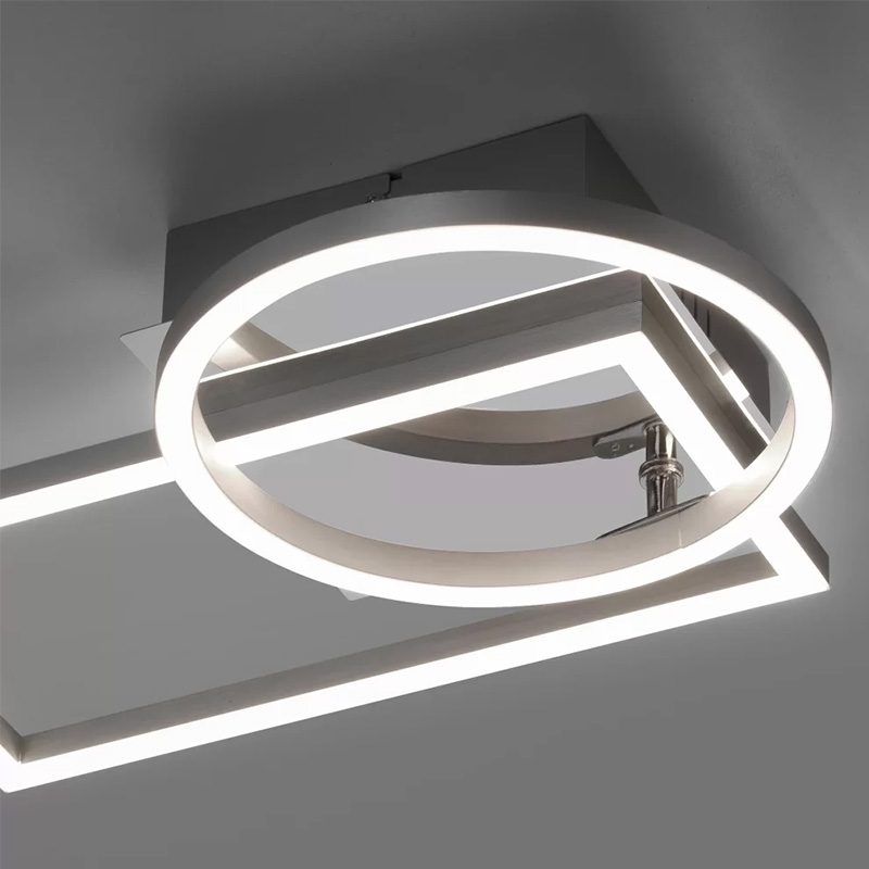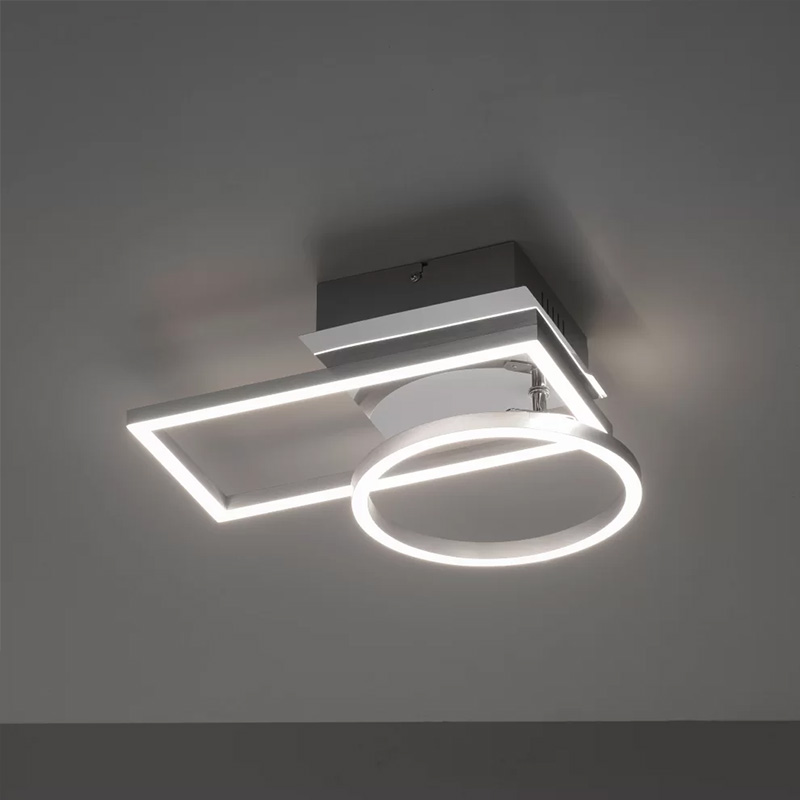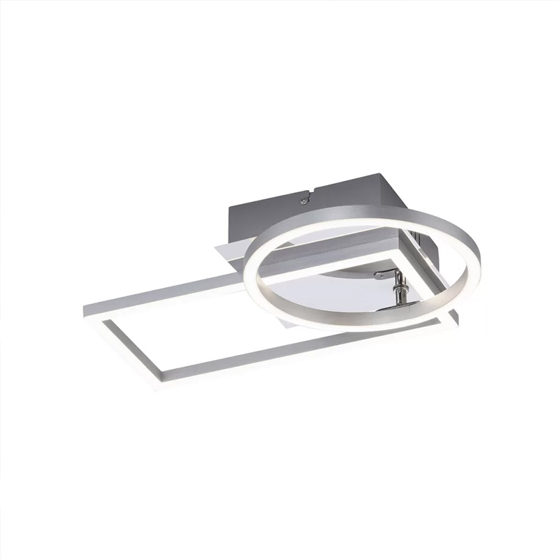 Плафонът IVEN е с модерен дизайн, съчетаващ геометрична правоъгълна форма с кръг, създавайки интересна и динамична композиция. Осветителното тяло е подходящо за осветление за хол, спалня, коридор или кухня.
