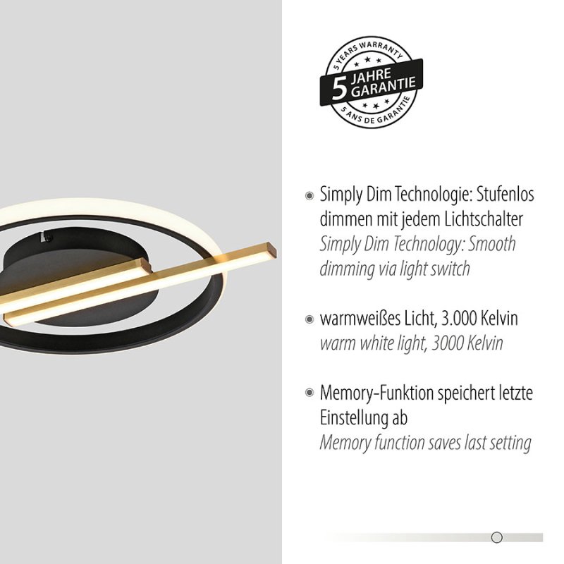 Осветителното тяло е с технология Simply Dim, която позволява плавно димиране от 100% до 10% чрез стандартния стенен ключ – без нужда от специален димер. Контролът се осъществява чрез кратки импулси при включване и изключване на осветлението. Може да запаметите желаната яркост, която ще се запази при следващо включване, благодарение на вградената функция памет.