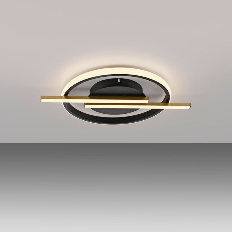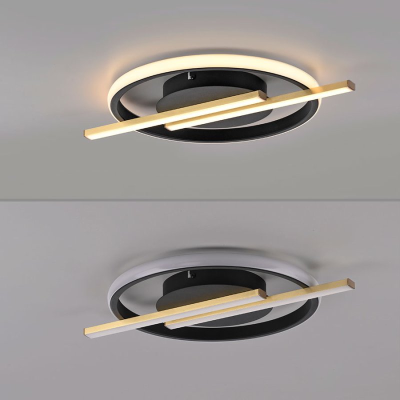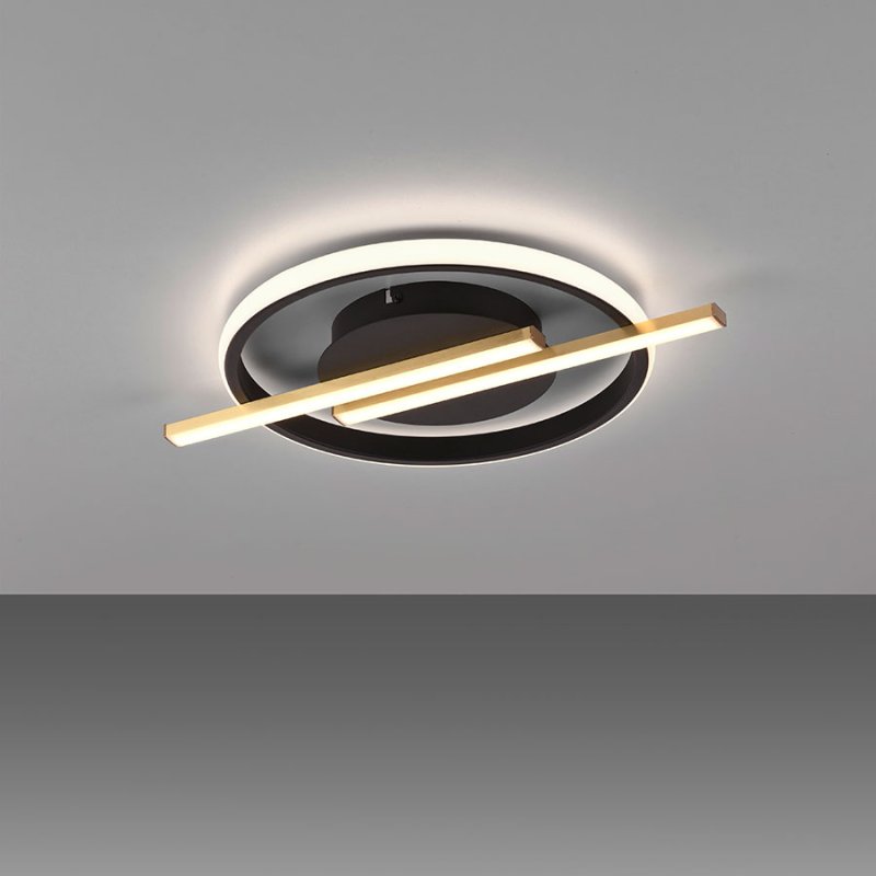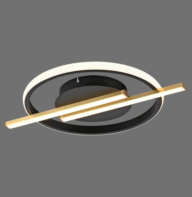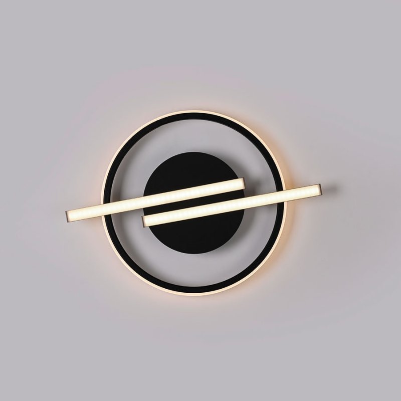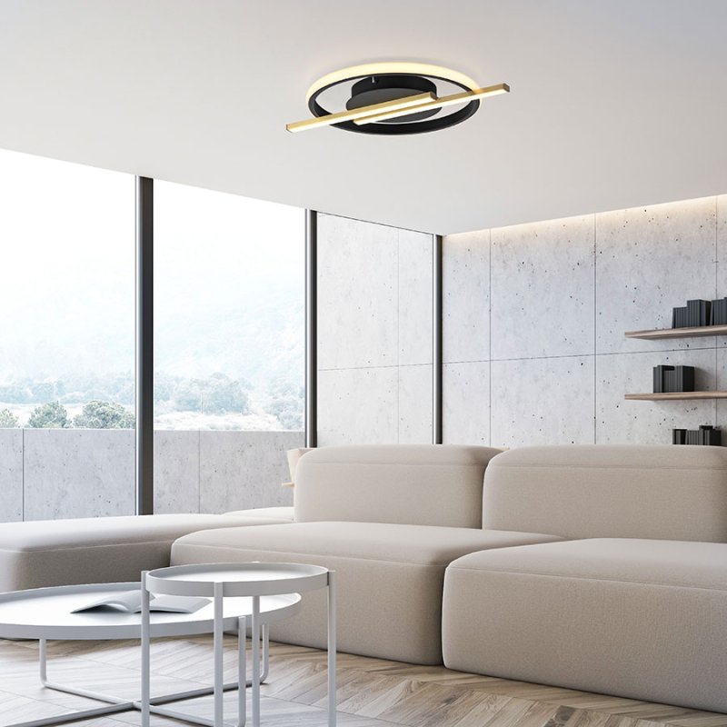 LED плафон Korsa, изработен от метал в черен цвят, с кръгла форма и модерен дизайн. Комбинацията от LED ринг и линеен светлоизточник, добавя интересен акцент на таванната лампа.
