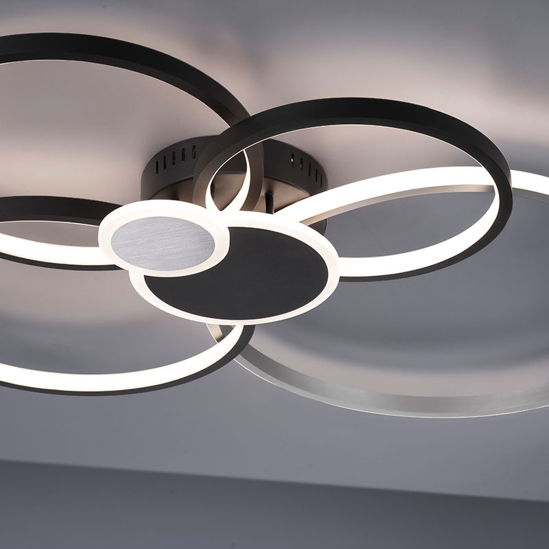 Осветителното тяло впечатлява с модерния си дизайн от преплитащи се кръгове в различни цветове и размери, които създават интересна геометрична композиция. Плафонът PAPILON е в модерен стил и изчистен дизайн, който се вписва перфектно в съвременни, минималистични и скандинавски интериори. Енергийно ефективната LED технология осигурява ярка и равномерна светлина при ниска консумация на електроенергия.