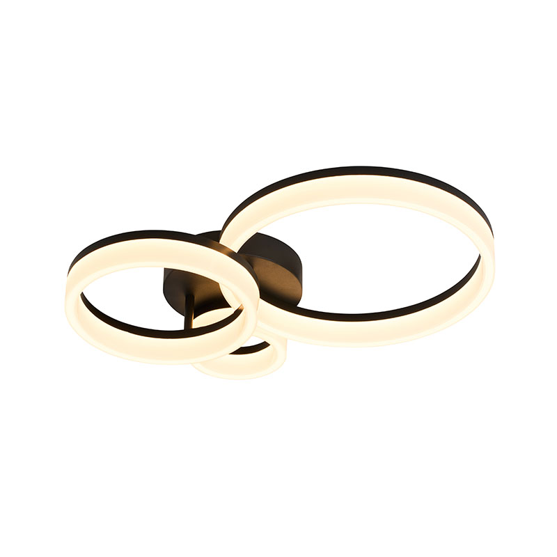 LED Плафон TRIPLE е модерно и функционално осветително тяло, което впечатлява със своя изчистен дизайн и елегантна геометрична форма. Изработен е от метал в матово черно покритие и бял акрилен разсейвател, който осигурява равномерно и приятно разпределение на светлината.