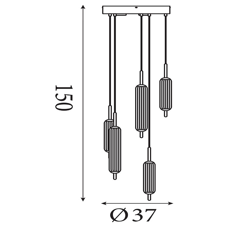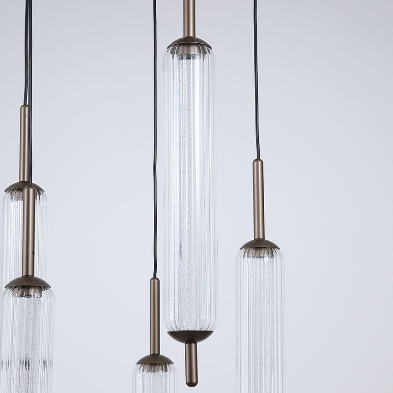 LED полилей Cattail е изработен от метал в топъл цвят лате, комбиниран с разсейватели от прозрачно стъкло. Висящата лампа се отличава с каскадно подредени пет издължени светлоизточника, които създават изчистена вертикална композиция и придават модерен и елегантен акцент в интериора.