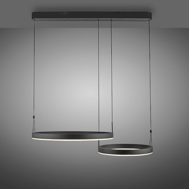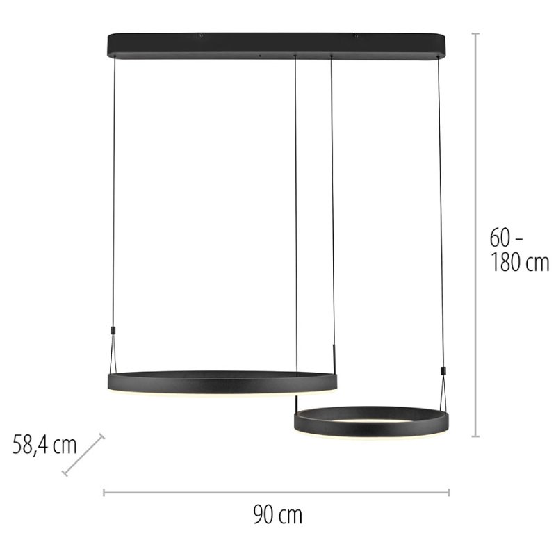 LED Полилей ESKO е стилно и модерно осветително тяло, което съчетава елегантен дизайн и функционалност. Изработен с алуминиева основа в черен цвят и разсейвател от акрил с 2 светлинни кръга. Подходящ е за осветление във всекидневна, над трапезната маса в кухнята или в офис.