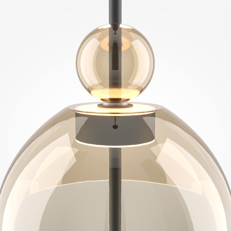 LED полилей Bangkok е изработен от метал в черен цвят, с разсейвател от прозрачно стъкло в топъл кехлибарен нюанс, като съчетава изискан дизайн с вдъхновение от свещената будистка архитектура. Формата му напомня на многоетажна структура на храма на Изумрудения Буда в Банкок.
