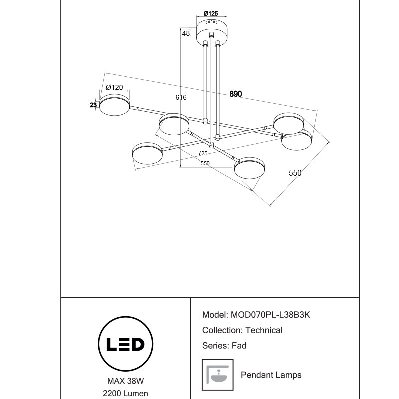 LED полилей Fad MOD070PL-L38B3K