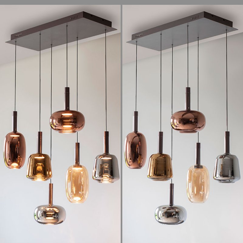 LED Полилей IRIDES е стилно и изискано осветително тяло, което съчетава модерен дизайн с нотка лукс. Изработен с метална основа в цвят кафе и шест разсейвателя от стъкло в различни форми и цветове – опушено, мед и кехлибар, този полилей впечатлява със своята линейна форма, която допълва съвременния интериор. Подходящ е за осветление във всекидневна, над трапезната маса в кухнята, заведение.