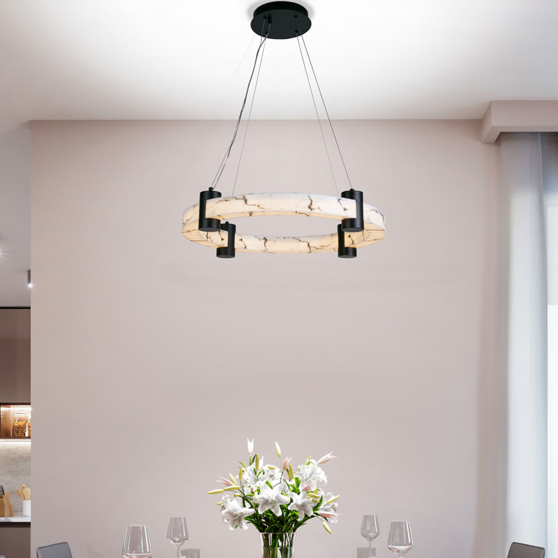 LED ринг полилей Moonbeam е съвършено съчетание от модерен стил и елегантност. Изработен от мека стомана в черен цвят, той впечатлява с разсейвател от смола, придаваща ефект, наподобяващ мрамор. Този уникален дизайн добавя характер и изтънченост във всяко помещение.