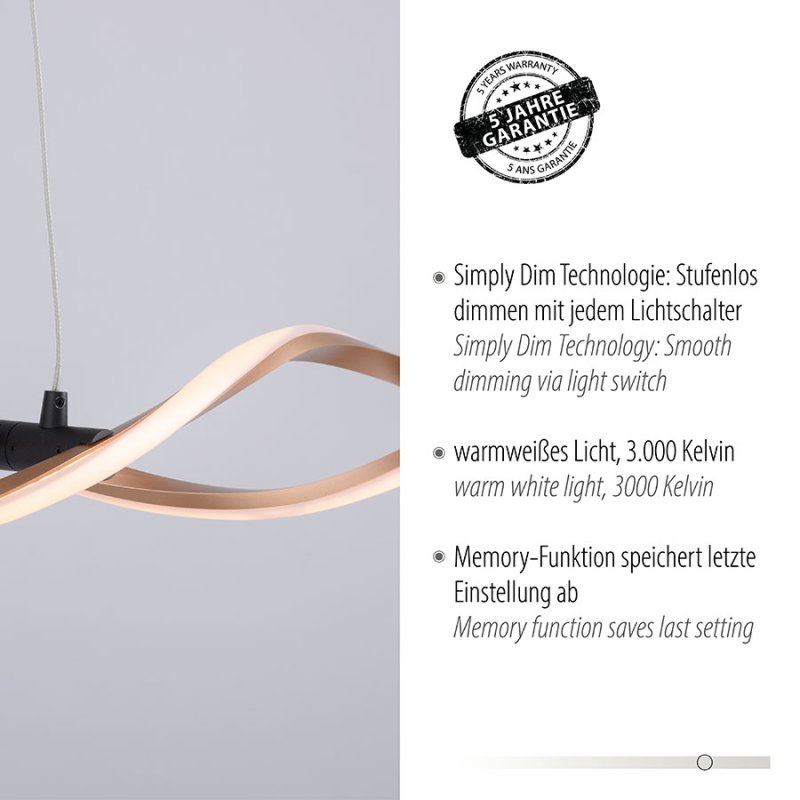 LED Полилей POLINA в месингово и черно е стилен акцент във всяка всекидневна зона. Със своя елегантен вълнообразен дизайн от алуминий създава модерен и изискан облик. Двата LED източника излъчват топла бяла светлина (3000K), която придава уют и хармония на пространството.
