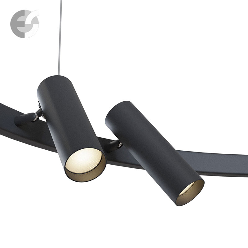 Осветителното тяло включва спот лампи с LED модули, които могат да се насочват според вашите нужди в две равнини: хоризонтално (340°) и вертикално (90°). Това позволява насочване на светлината точно там, където е необходимо, подчертавайки важни елементи от интериора или осигурявайки функционално осветление за работни зони. Забележете, че спот лампите са фиксирани към пръстена и не се преместват по него.