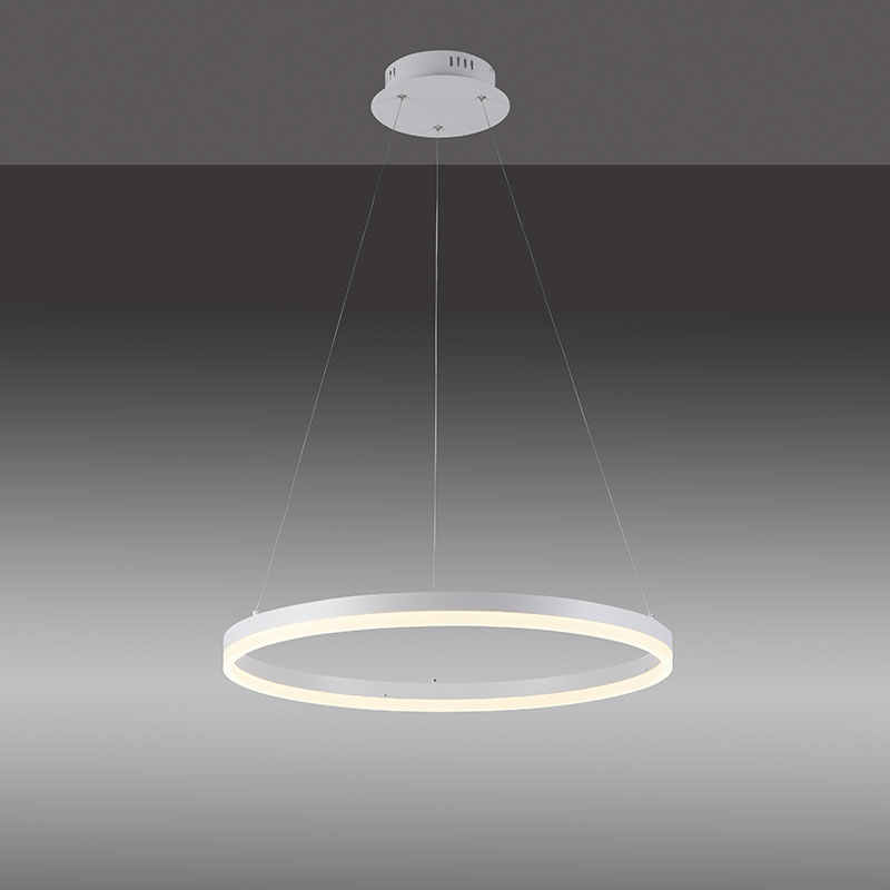 Осветително тяло - лед полилей TITUS, в изчистен модерен стил, изработен от метал и алуминий, подходящ за осветление за всекидневна, кухня / трапезария и заведение. Полилеят е с технология SimplyDim, която ви позволява плавно да димирате осветителното тяло чрез ключа на стената. Как да активирате функцията SimplyDim. Включете лампата, след което в рамките на 3 секунди, я изключете и включете отново. Така ще активирате процеса на димиране. Светлината ще започне да се променя автоматично плавно от 10% до 100%, когато достигне 100% или 10% прави пауза за 2 секунди и димиращия процес започва отново. Когато светлината достигне желаната от вас яркост, натиснете ключа на стената още веднъж, за да запазите тази интензивност на осветление. Полилеят също така е с функция памет, която запомня последната ваша настройка на светлината, за да не се налага да я настройвате при всяко включване. Производител Paul Neuhaus.
