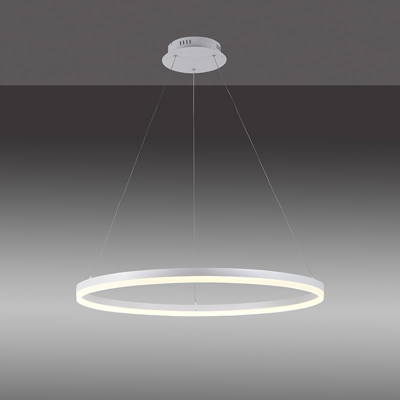 Осветително тяло - лед полилей TITUS, в изчистен модерен стил, изработен от метал и алуминий, подходящ за осветление за всекидневна, кухня / трапезария и заведение. Полилеят е с технология SimplyDim, която ви позволява плавно да димирате осветителното тяло чрез ключа на стената. Как да активирате функцията SimplyDim. Включете лампата, след което в рамките на 3 секунди, я изключете и включете отново. Така ще активирате процеса на димиране. Светлината ще започне да се променя автоматично плавно от 10% до 100%, когато достигне 100% или 10% прави пауза за 2 секунди и димиращия процес започва отново. Когато светлината достигне желаната от вас яркост, натиснете ключа на стената още веднъж, за да запазите тази интензивност на осветление. Полилеят също така е с функция памет, която запомня последната ваша настройка на светлината, за да не се налага да я настройвате при всяко включване. Производител Paul Neuhaus.